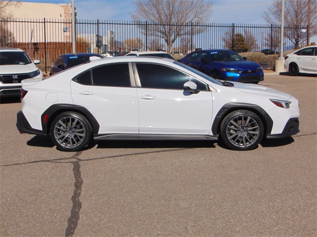 The Ceramic White 2022 Subaru WRX GT AWD delivers thrilling performance, modern technology, and everyday usability in a sport sedan engineered for drivers who demand more from their daily drive. Finished in Subarus bold Ceramic White exterior, this WRX GT stands out with a sharp, aggressive look that highlights its wide stance, sculpted body lines, functional hood scoop, and performance-focused design. The crisp white finish perfectly contrasts the WRXs sporty accents, giving it a commanding presence on the road.