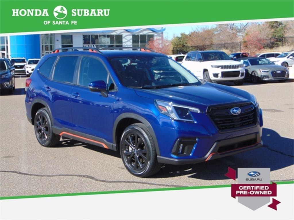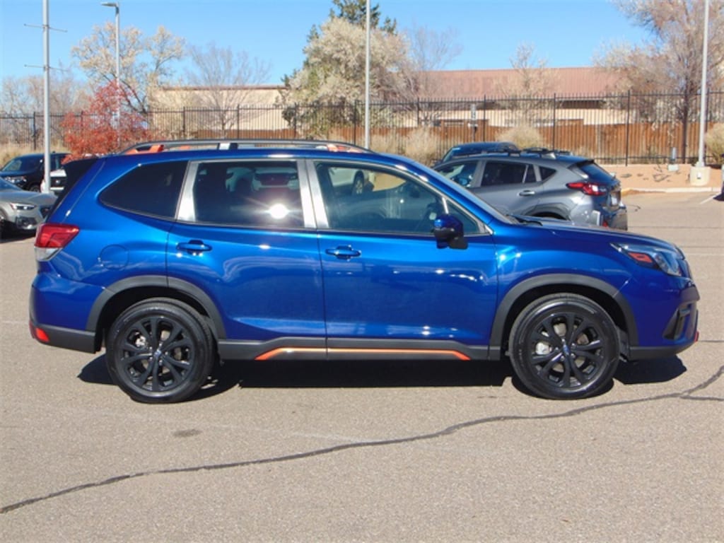 Sporty, capable, and packed with advanced features, this 2024 Subaru Forester Sport AWD delivers a striking blend of performance and style. Finished in the eye-catching Sapphire Blue Pearl exterior, this Forester stands out from the crowd with its bold black-and-orange accenting, unique Sport styling cues, and athletic stance. Powered by a 2.5-liter 4-cylinder DOHC 16V engine paired with a smooth Lineartronic CVT, it offers excellent fuel efficiency, responsive performance, and the confidence of Subarus legendary Symmetrical All-Wheel Drive. With only 7,077 miles, this Forester is practically like new and ready for years of dependable driving.